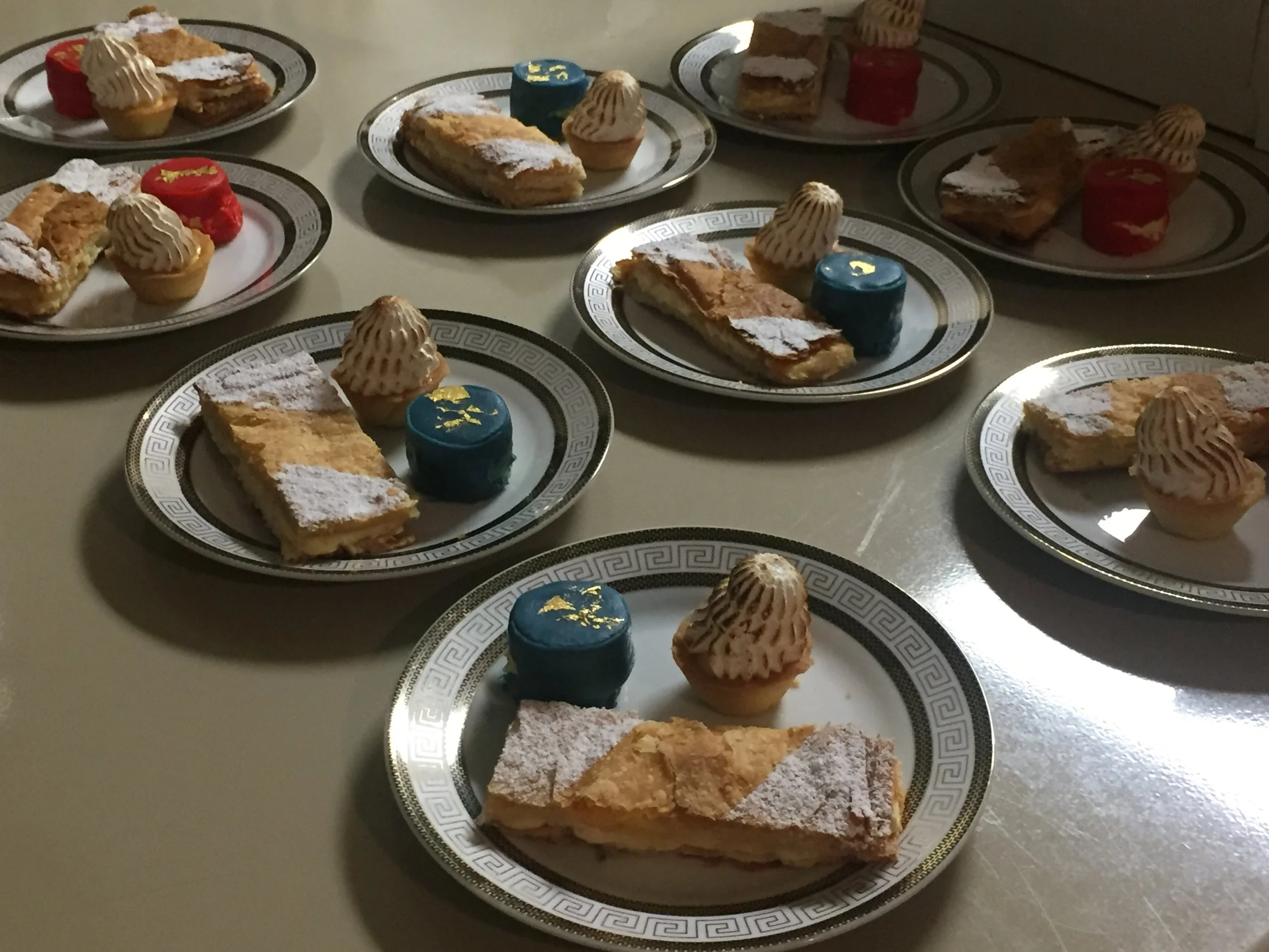 Pastries—Napoleon mille-feuilles, marzipan petit fours, lemon meringue tarts