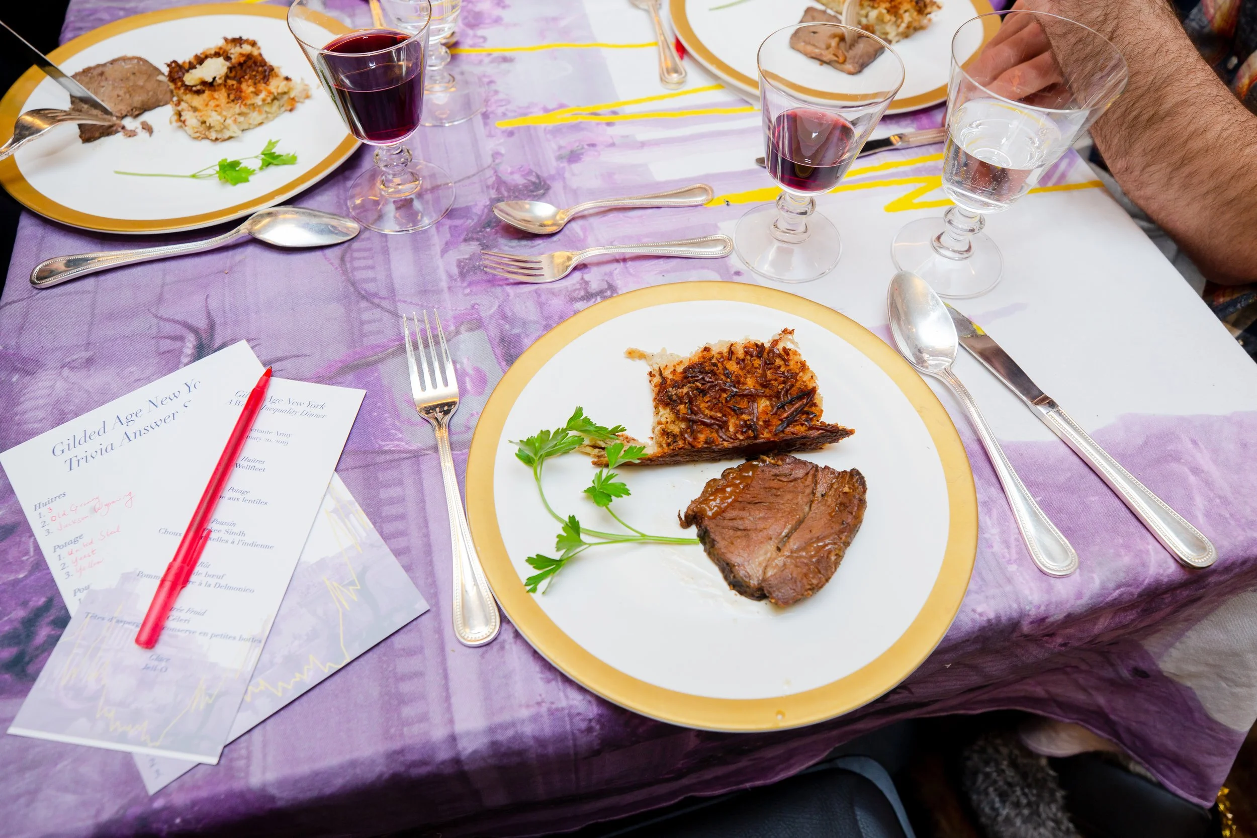 I created salon dinners based on the political and economic conditions of notable periods in art history (London in the 1730s; Tehran in the 1970s; Paris 1800-1815; Moscow 1917-1925; and New York 1870-1910). These dinners had several courses of food recreated from historical recipes, and each course was paired with a short lecture. Although they’re theorized and informative, dinners are also a way to reflect on the fact that art is a social industry. As all of us who have been to opening receptions or art fairs or fundraising galas know, art is about parties, and parties have snacks! If artists and their supporters are making what will become history-defining decisions over shared meals, the question bears asking, what do they eat?